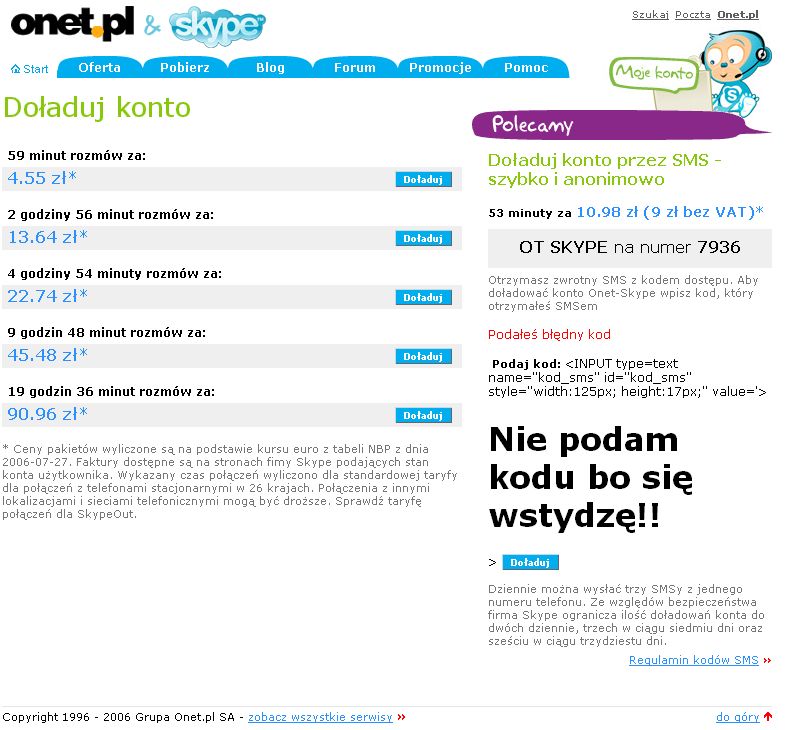 Jak już wiadomo dane przekazywane do serwerów Onetu nie są filtrowane tak więc możemy dokonać wstrzyknięć własnego kodu.