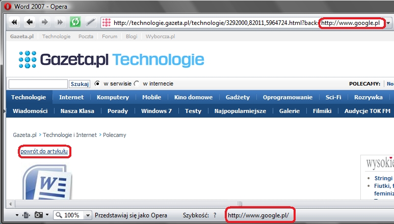 Czyżby programiści z gazeta.pl zabezpieczyli się przed tą formą „ataku”? Po próbie wejścia na stronę z linku na końcu wpisu nic ciekawego nie dzieje się.