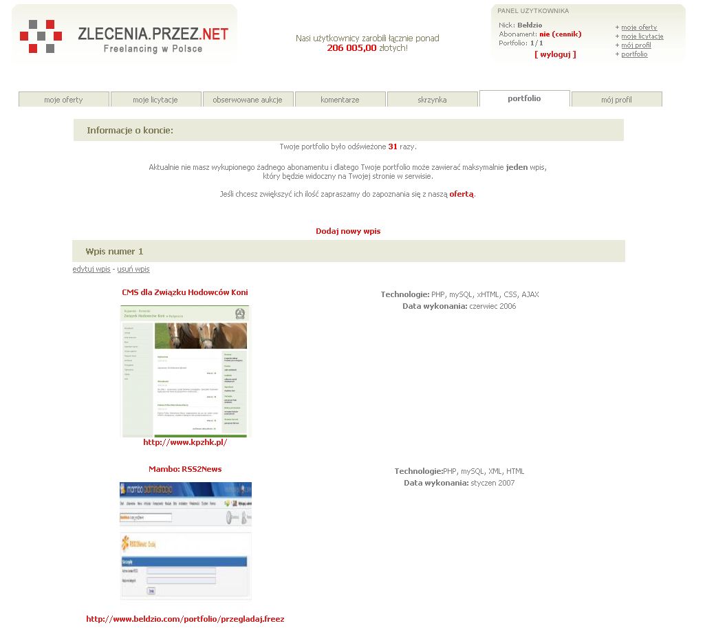 Na stronie http://www.zlecenia.przez.net/moje,portfolio mamy możliwość dodania tylko jednej pracy (w wersji podstawowej). Zmieńmy to!
